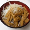 フォークでまんべんなく穴を開けたあとは、1cm程度の厚みでそぎ切り。その後、適当に調味料と和える。生姜と酒、砂糖も少し入れたかな・・・。