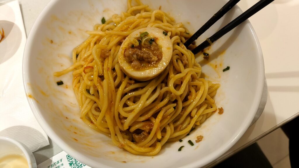 注文して、ネットで調べてみると、肉味噌まぜ麺はフードコート店舗限定のメニューとのこと。(公式サイトにはフードコートほか一部店舗で販売と記載。)