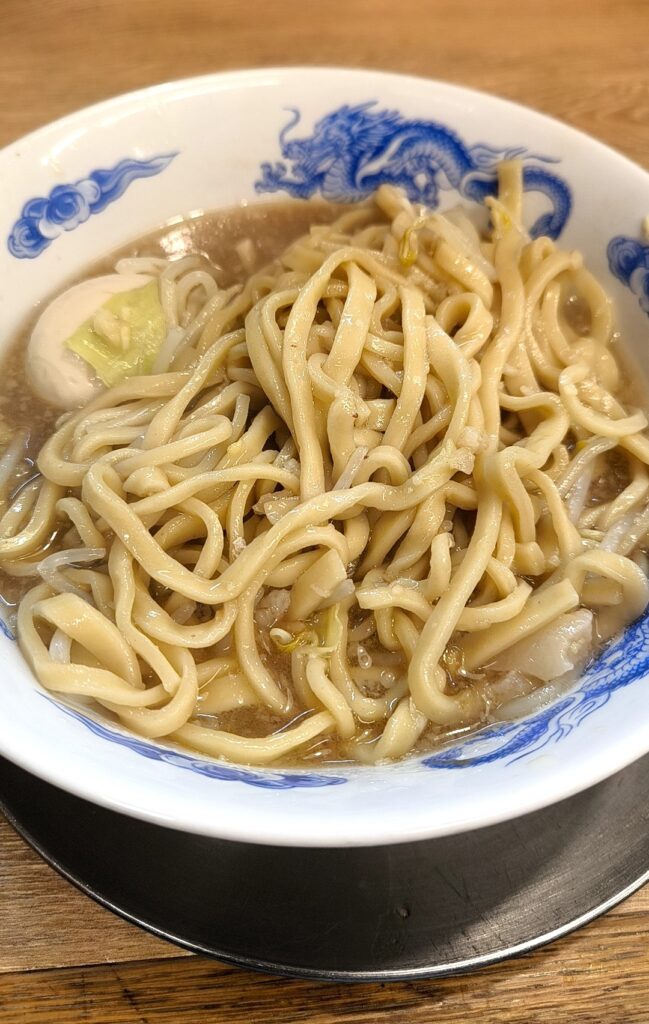 この、アブラとヤサイを一緒に食べる一口目が一番おいしいんですよね。アブラはトリプルでも良かったなと思いつつ、あまりの旨さにアブラ&ヤサイを食べ進める。