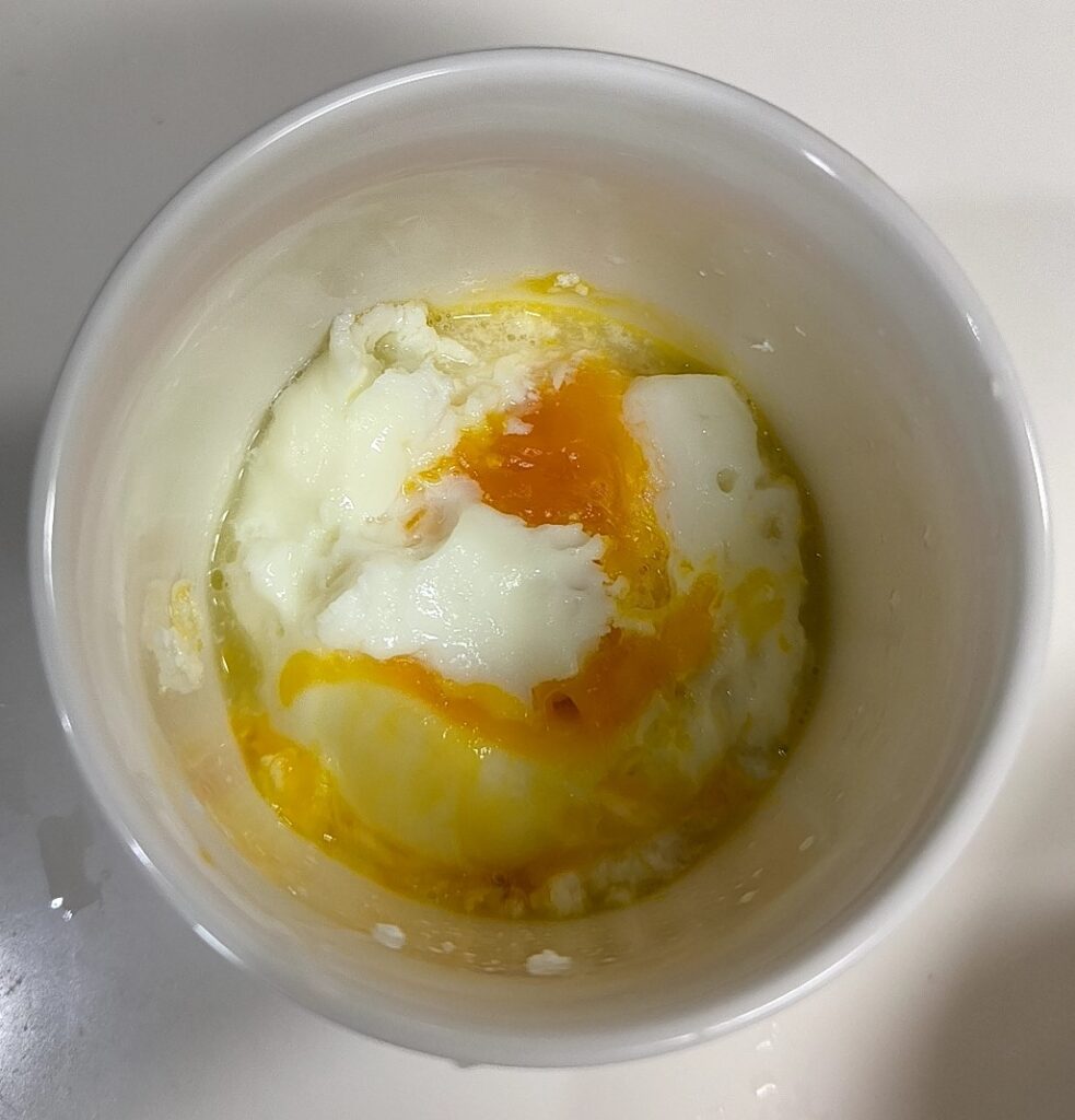 温玉をレンチンで作るも、穴あけが不十分だったのか、破裂!火も通り過ぎてしまいゆで卵に・・。