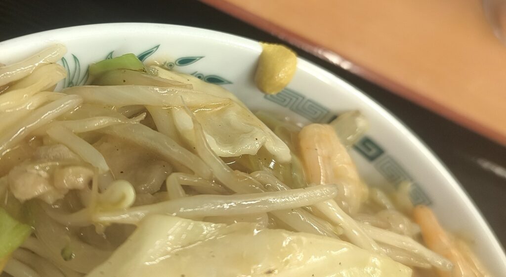 カタヤキソバに欠かせないのがカラシですよね。縁に小指の先ほどちょっぴりでした。このあたりは店舗や調理した人次第なのかもしれませんが、寂しい量でした。